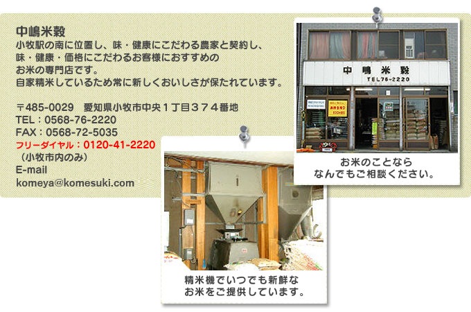 ●中嶋米穀 〒485-0029 愛知県小牧市中央1丁目374番地
